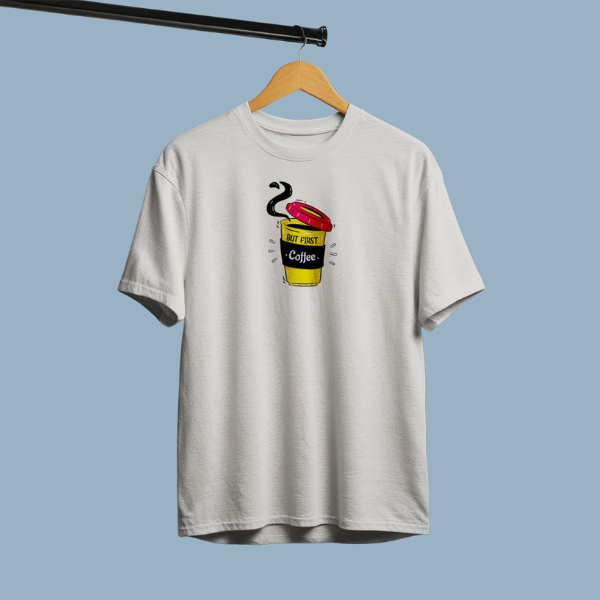 Fuel your day in style with our “But First, Coffee” Oversized White T-Shirt, crafted from 100% premium cotton for unbeatable comfort and breathability. Featuring a quirky coffee cup graphic with bold colors, this unisex tee is a must-have for every coffee lover who believes mornings start only after that first sip. Its relaxed oversized fit makes it perfect for casual outings, lounging, or pairing with denim for a cool streetwear vibe. A fun yet functional wardrobe essential for caffeine-fueled souls.