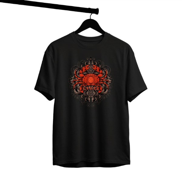 Unleash your inner strength with our ‘Crimson Cancer’ tee. This exclusive design features a striking red crab, the symbol of the Cancer zodiac, framed by an intricate, dark filigree pattern. Printed on a premium black cotton t-shirt, this piece offers both comfort and a bold, artistic statement. Perfect for those who appreciate unique graphic apparel, astrology, or the mysterious beauty of marine life