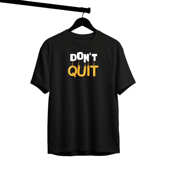 Stay motivated in style with our “Don’t Quit” Oversized Black T-Shirt, crafted from 100% premium cotton for all-day comfort and breathability. Featuring a bold motivational print in contrasting white and yellow, this unisex tee is designed to inspire confidence and resilience. Its relaxed oversized fit makes it perfect for casual outings, workouts, or everyday wear. Pair it with jeans, joggers, or shorts to elevate your streetwear game while keeping your mindset strong.