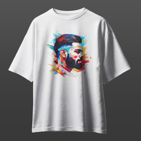 Rule the streets with the King Kohli Power Stroke Oversized Tee, featuring a striking artistic portrait of Virat Kohli in vibrant colors. Crafted with breathable 100% cotton and a relaxed fit, this tee combines comfort with cricketing passion, making it a must-have for every fan of the legend.